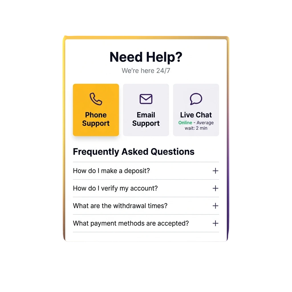 - FAQ and Help Centre: Covers the most common account, payment, and bonus questions with detailed written guides